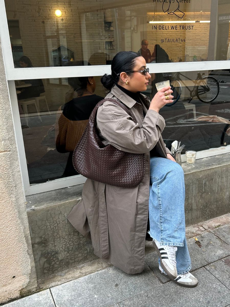 Aya-s popular braided shoulder bag. It comes in 9 different colors and can hold a 16” Macbook. The bag is divided into a large compartment with a zipper closure, and inside the bag there are two small pockets and a small pocket with a zipper closure ✨