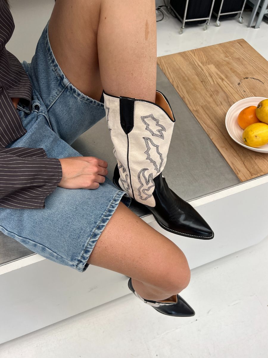 Our beautiful Cowboy boots are perfect for fall and winter with a dress or a pair of jeans. They have a lot of beautiful details, including the stitching 🖤