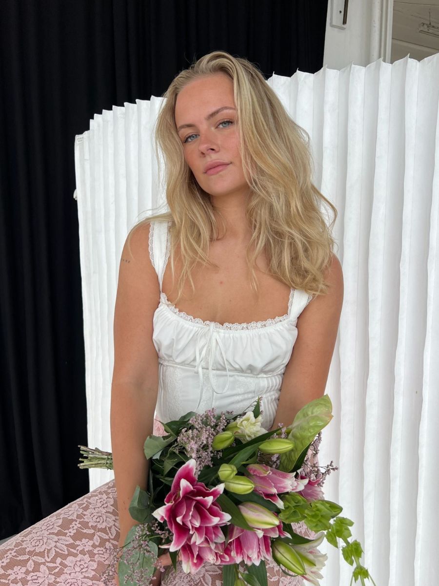 Our lovely Fiona top, perfect with lace trousers, a pair of jeans, or a skirt. The top can be adjusted at the back for a perfect fit and has a side zipper ✨