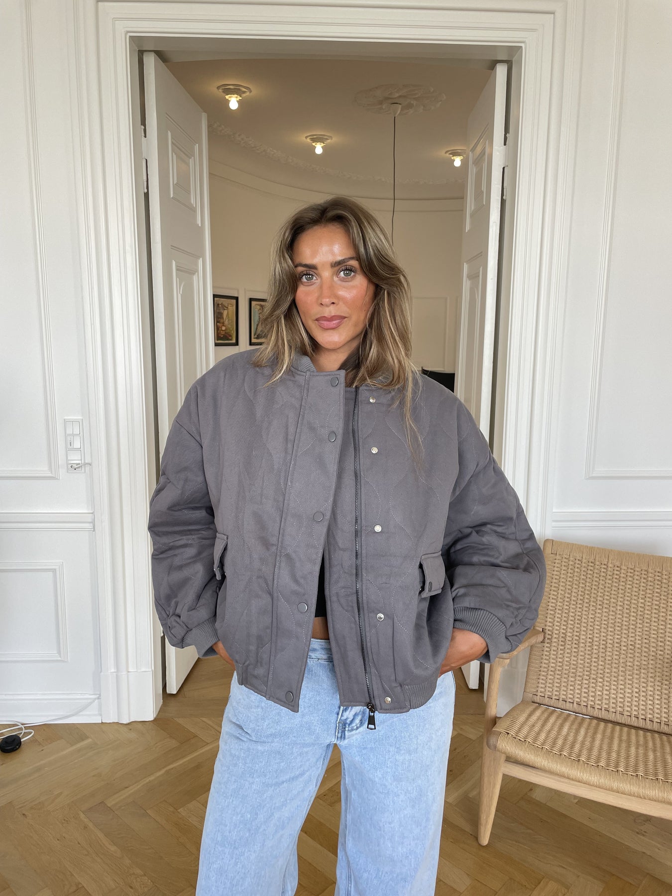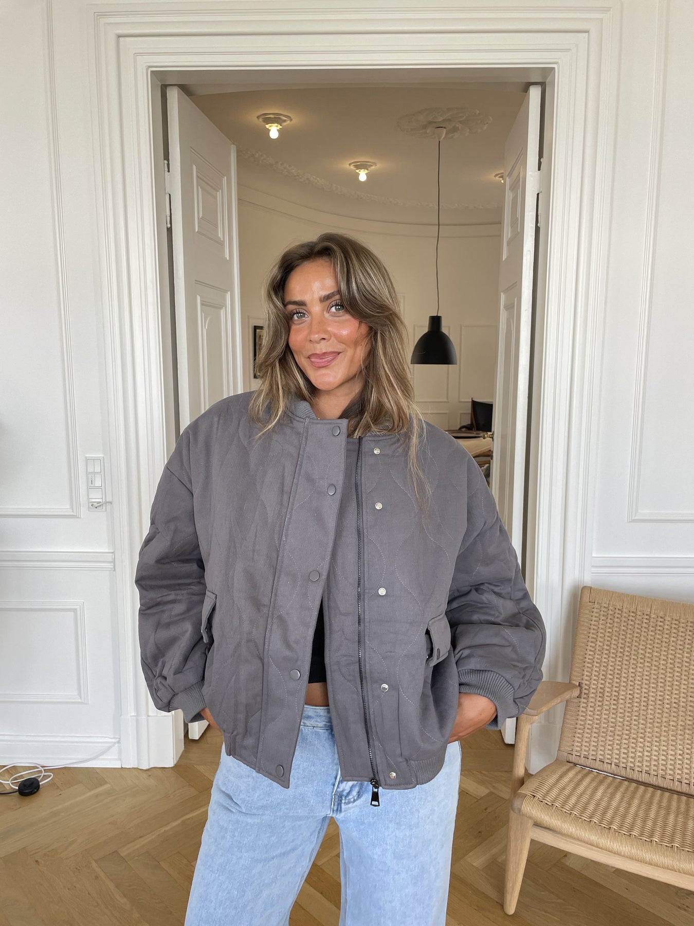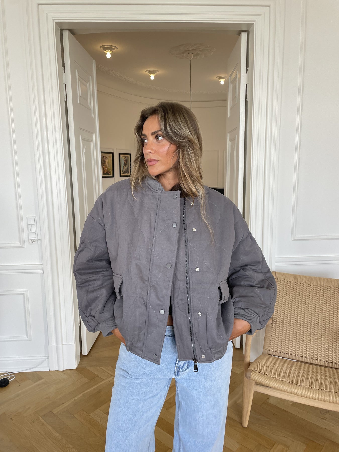 Soft and cozy oversized bomber quilted jacket. Available in a greyish washed color... The quilt material is one of this season's biggest fashion trends in jackets ✨