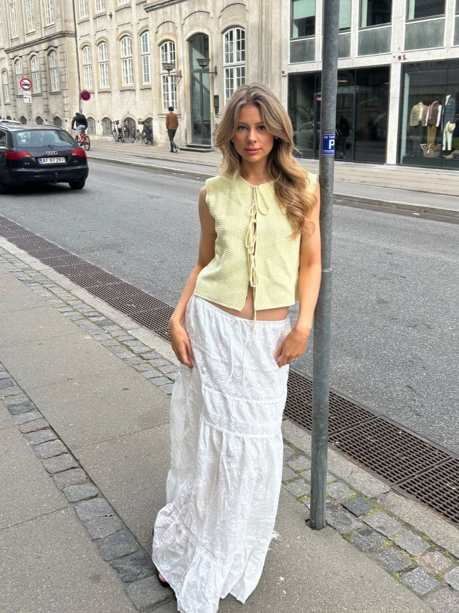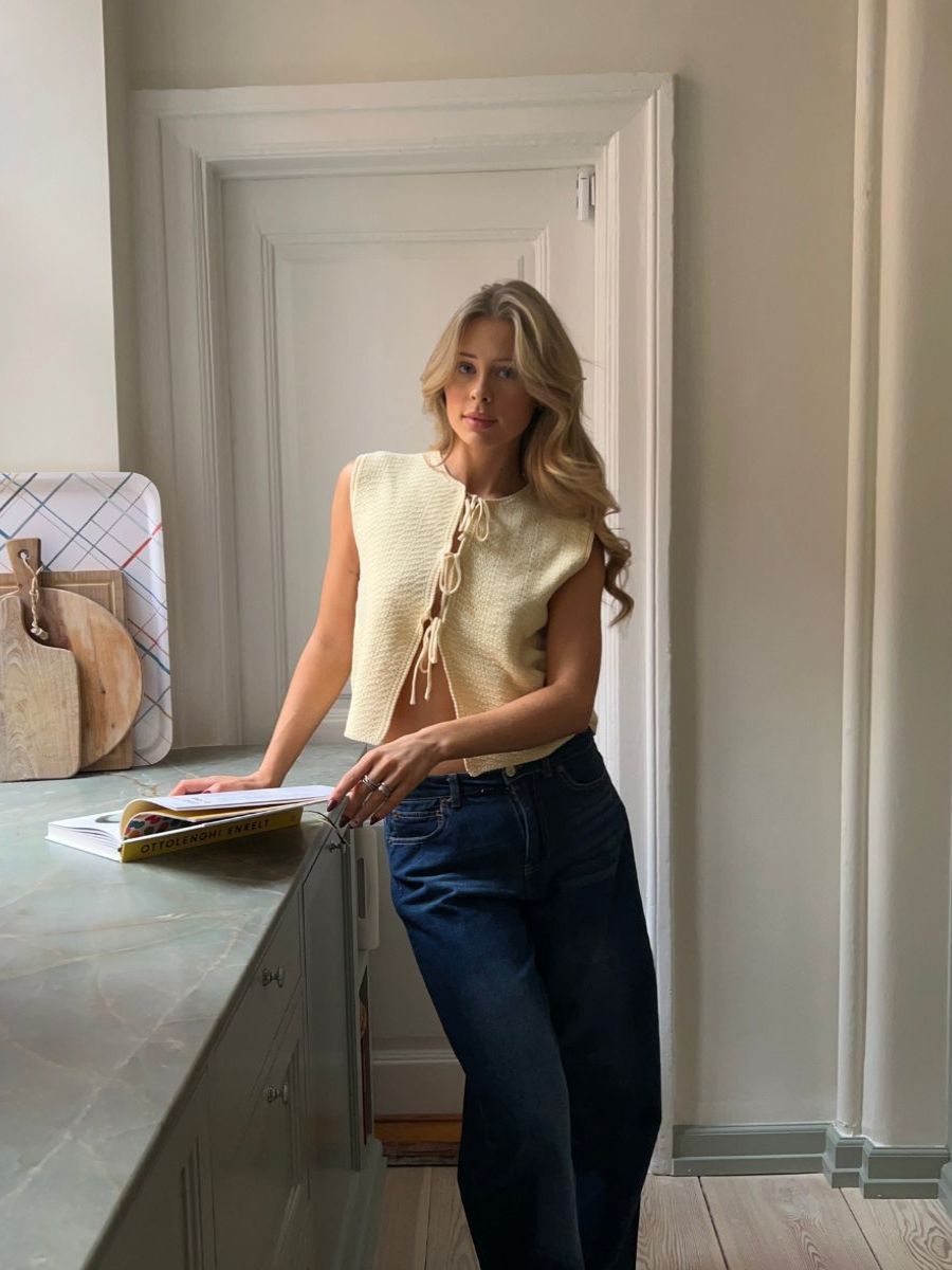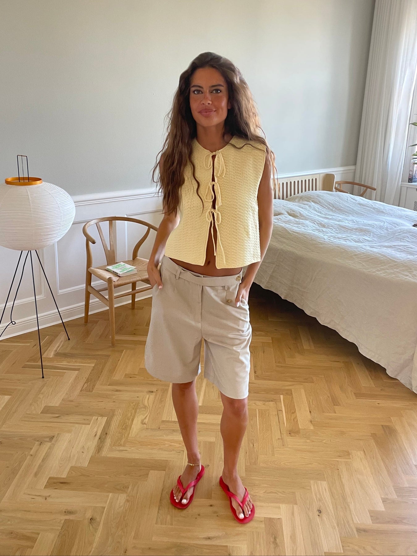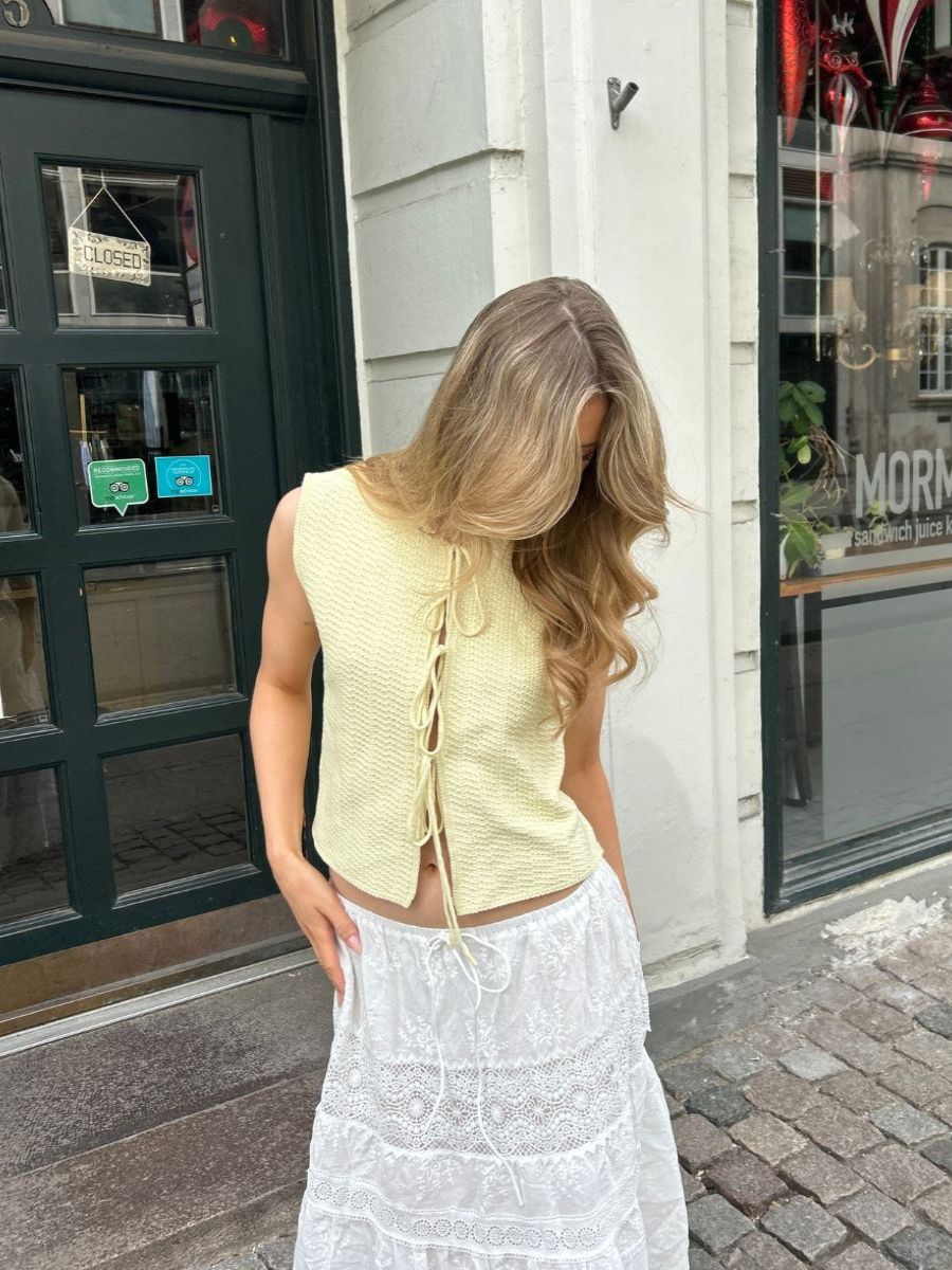 The Maya top is made from soft and comfortable knit and features three tie closures that provide an adjustable and unique look. It can be worn both ways, giving you multiple styling options, and has a loose fit that creates a light and relaxed look 💛