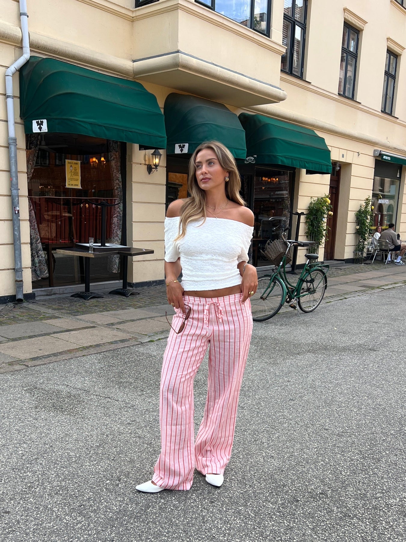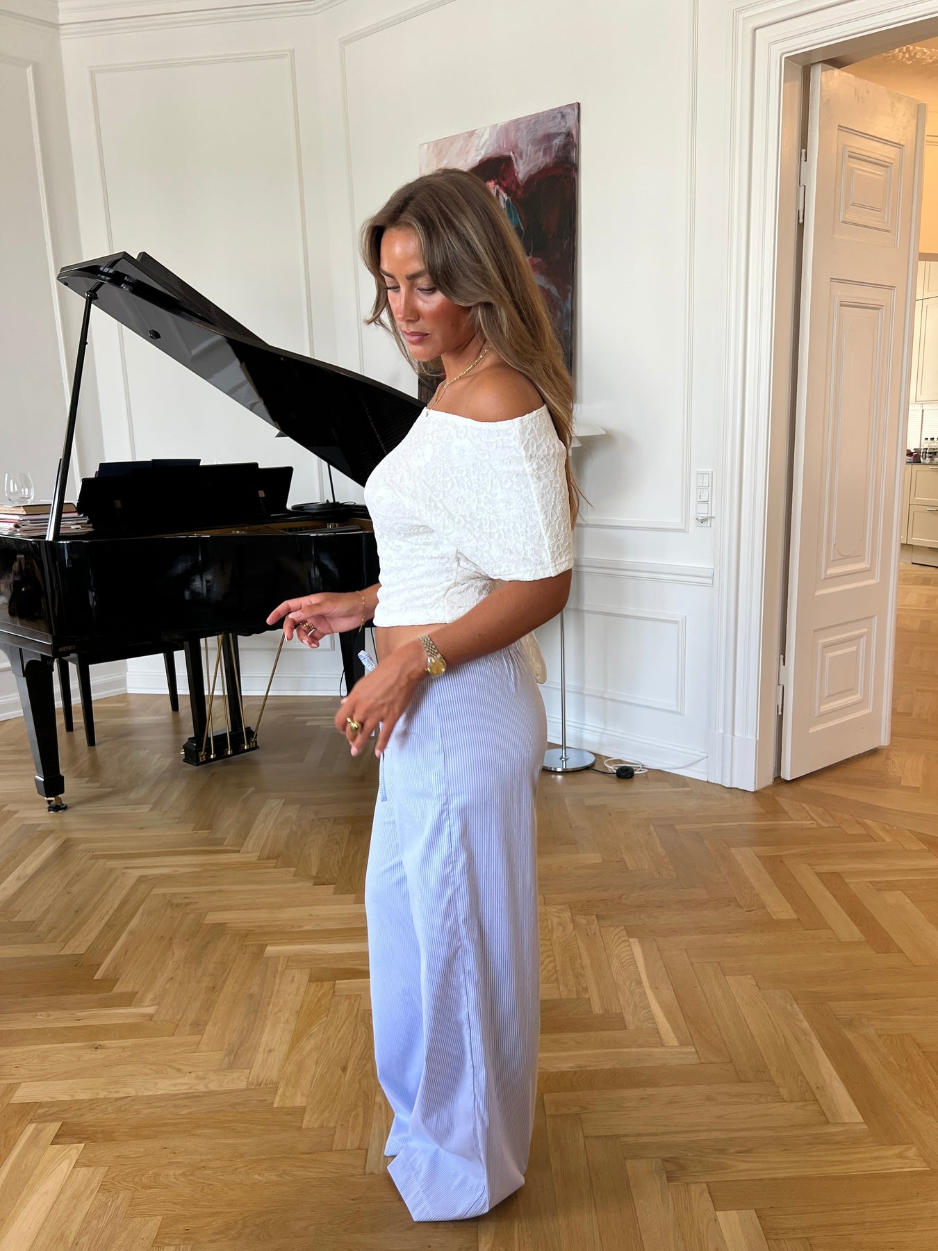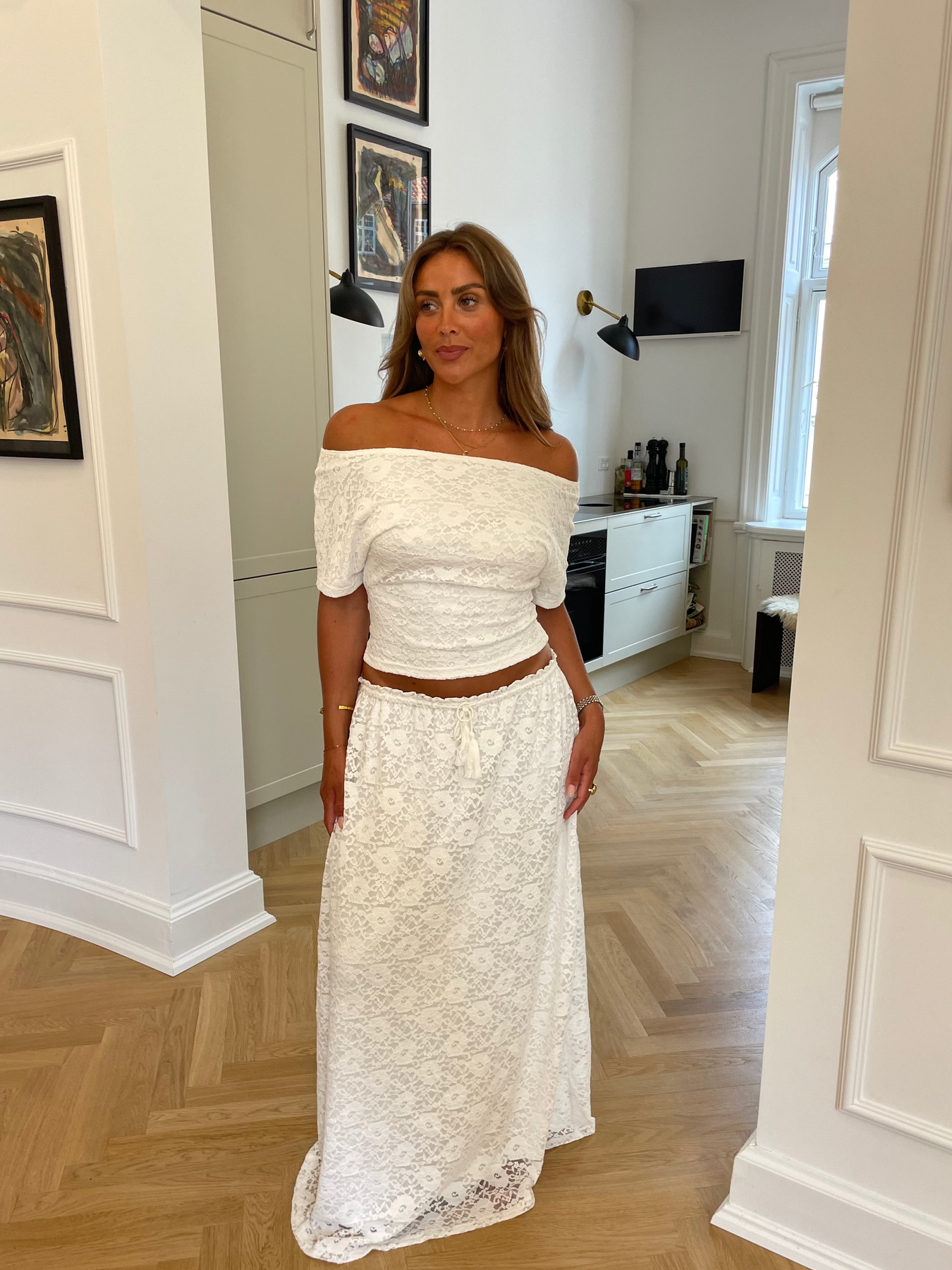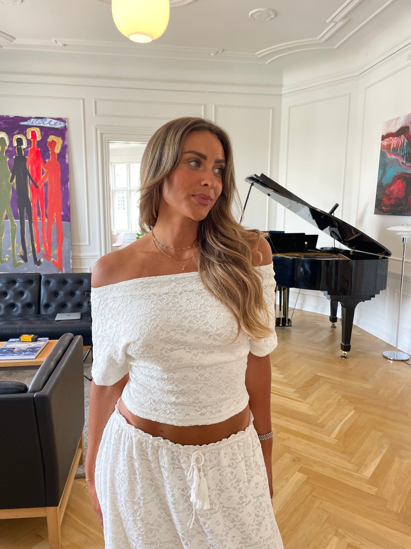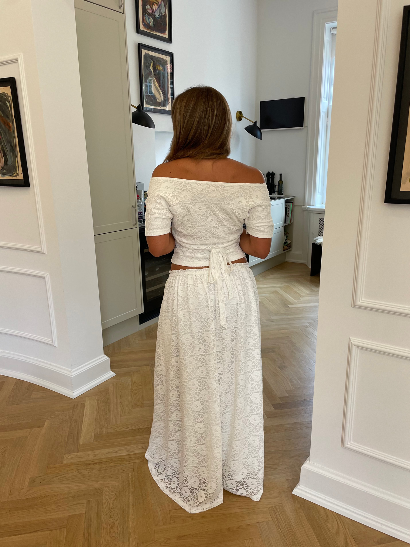 The Oura top is made from a beautiful lace material and has an inner lining, making it opaque. The long tie at the back can be styled at the back or front, depending on the look you want to achieve. The top can also be worn off-shoulder, one-shoulder, or in a classic style.