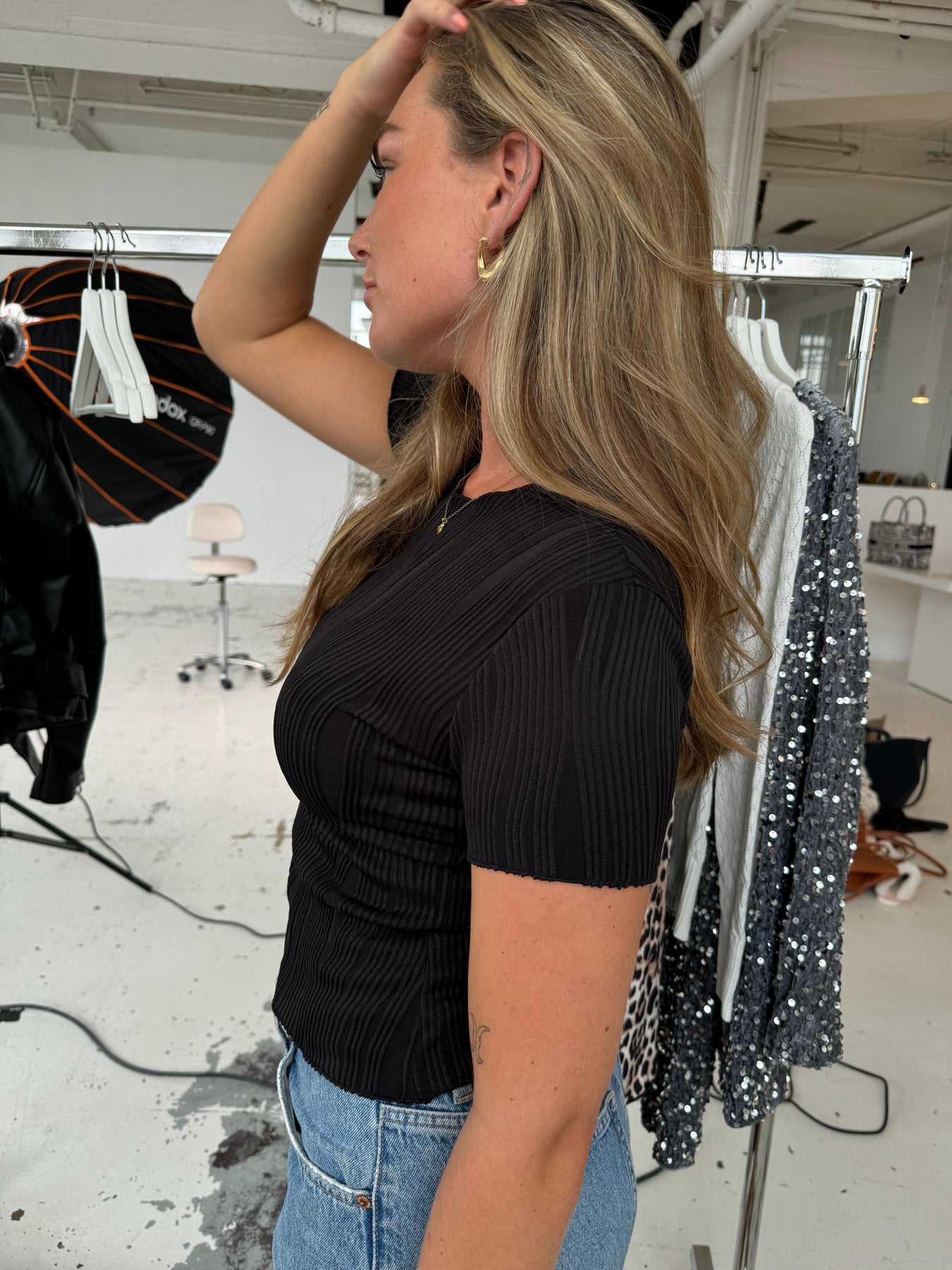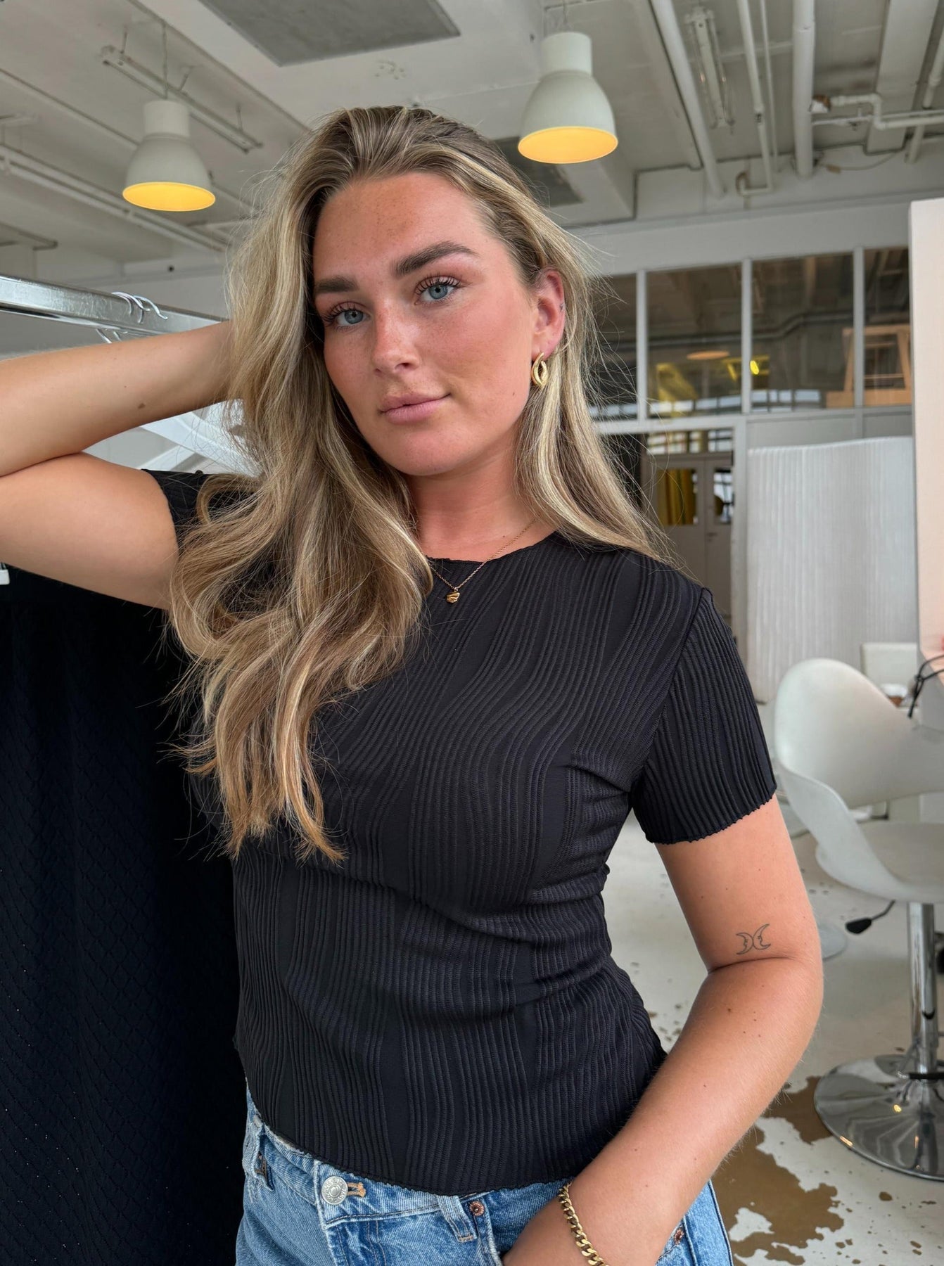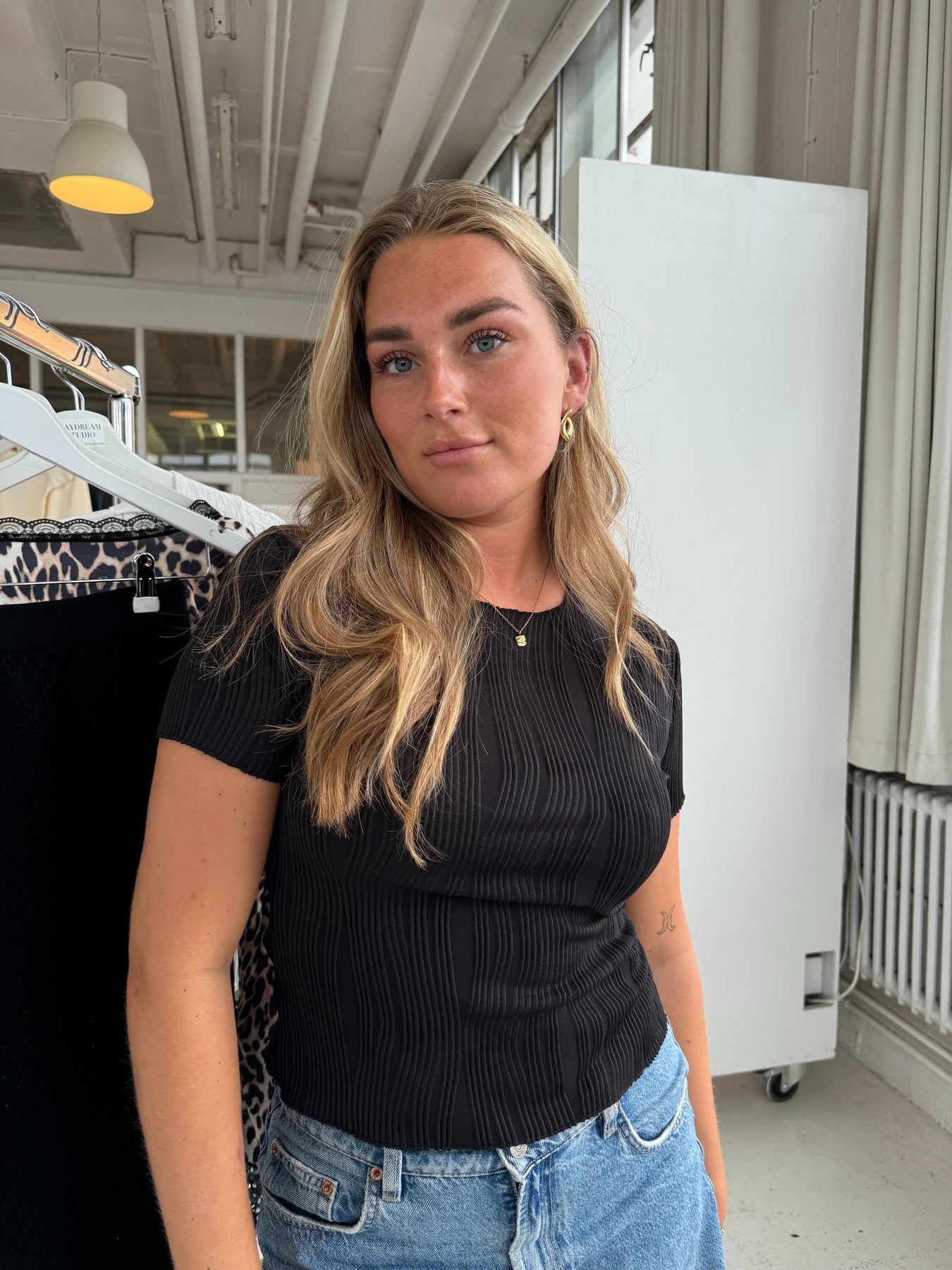The Palma t-shirt with lots of beautiful texture. The t-shirt has a trim all the way around, giving it a very feminine look 🖤