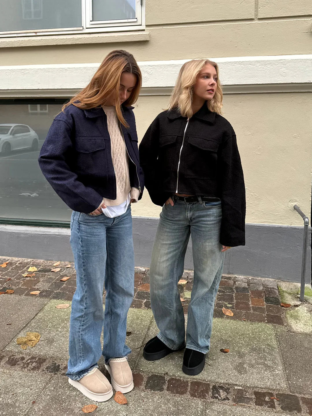 Our Una jacket is the perfect transitional jacket for the cooler months. It comes in three beautiful shades and combines functionality with a stylish look. The jacket has a practical zipper closure, two spacious front pockets, and a classic collar that adds extra detail. The slightly longer sleeves provide extra warmth and comfort while contributing to the modern look 🧥